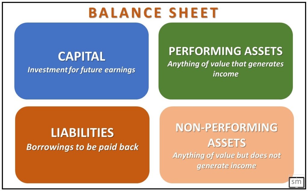 These stages in our life cycle may be compared to the four elements in a balance sheet. Let’s take a look at these elements in a Balance sheet.