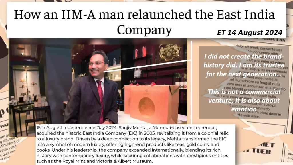 Sanjiv Mehta, a London-based entrepreneur with roots in his family’s traditional diamond business, is embarking on an ambitious venture. His endeavour is to evoke pride among Indians, as he seeks to transform ‘East India Company’ a brand historically linked to colonization, slavery, opium, warfare, and transnational trade into a contemporary premium luxury brand. This bold move aims to shift the brand’s negative perception of Indians to a positive association with the global community.