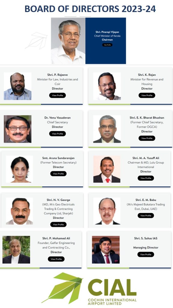 V. J. Kurien served as the Managing Director from the airport’s inception until his retirement in June 2021, a total of 19 years in three terms, including five years after his retirement in 2016. Kurien’s role in CIAL’s saga is highlighted by the case study by IIMK. To read the case study click here.