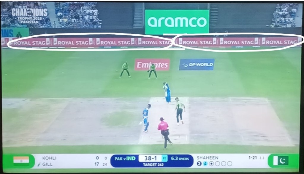 On the cricket field, sponsors are given prime visibility for their names laid out on carpets on the field. Premier partners receive prime placement behind the wickets, while global partners have their branding displayed along the sides of the pitch. Additionally, sponsors’ names appear in turn on the LED advertisement boards surrounding the boundary rope. As an official supporter, Royal Stag also receives display time, though for a shorter duration than the partners.