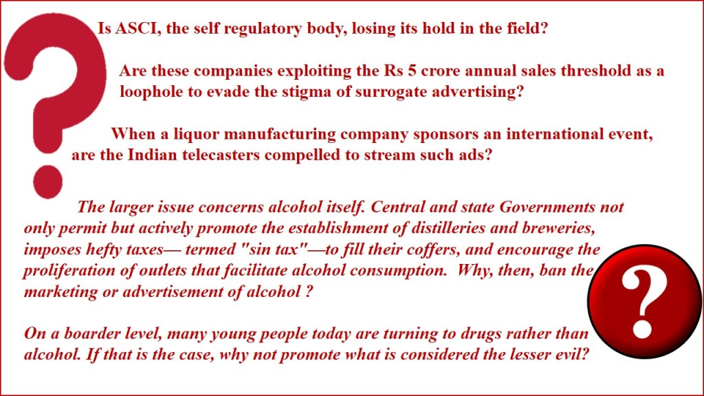 It was from your B.Com marketing class, I heard first about Surrogate Marketing.  Those days there were few companies doing it in the name of Club soda and mineral water. I still remember Bagpiper Soda Ads by Hindi Actors.
