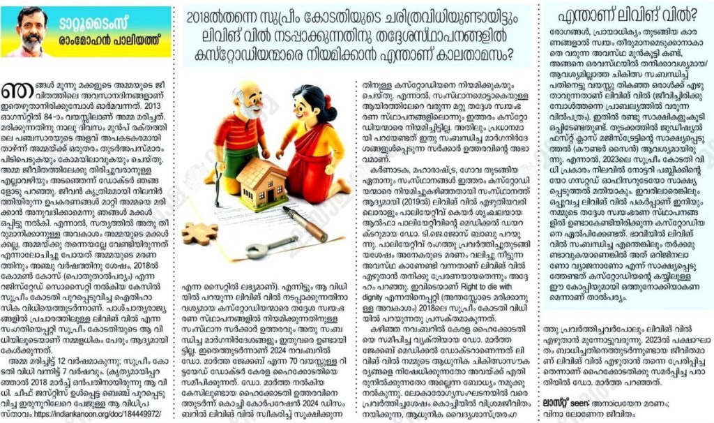 Kochouseph has highlighted the main constraint we Indians face: “the pressure of societal expectations on patient treatment.” By openly sharing his living will with family and friends, he has broken free from this restraint. His decision serves as a powerful advocacy tool, promoting awareness and encouraging others to consider the importance of a living will.