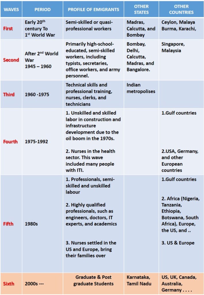 The fifth wave of migration from Kerala, which began in the 1980s, was characterized by its diversity and the emergence of three distinct streams, each reflecting broader global trends and Kerala’s evolving socio-economic landscape.